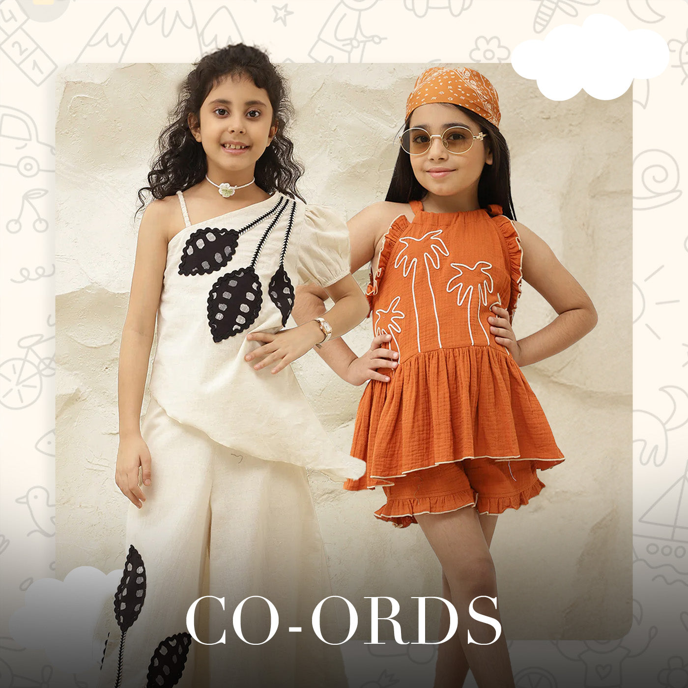 Leaf Patch Work Asymmetric Pure Cotton Girls Co-Ord Set
