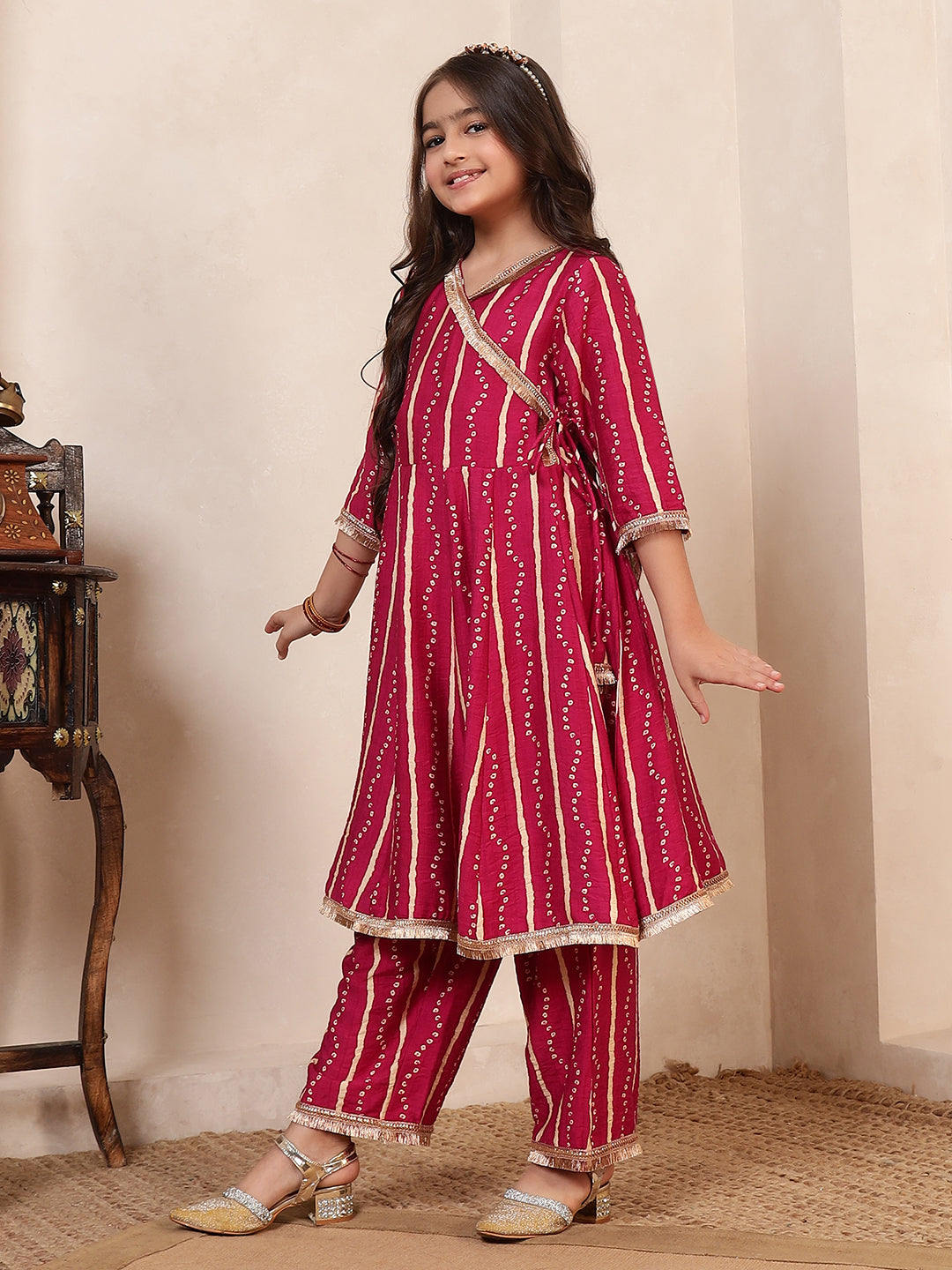 Inform when this item available Angrakha Style Bandhani Kurta With Pants Set