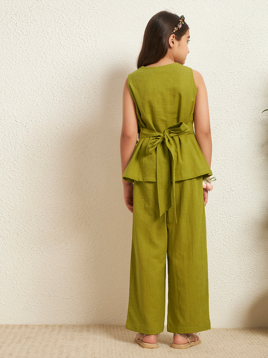 Inform when this item available Lime Green Cotton Flex Solid V-Neck Blazer With Pant Girls Co-Ord Set