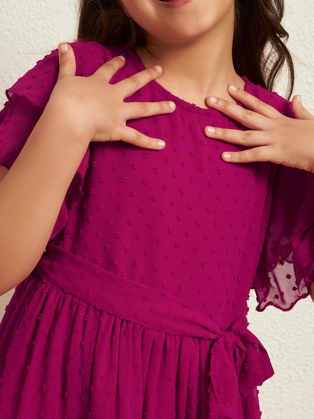 Inform when this item available Girl's Magenta Dobby Georgette A-Line Tiered Dress