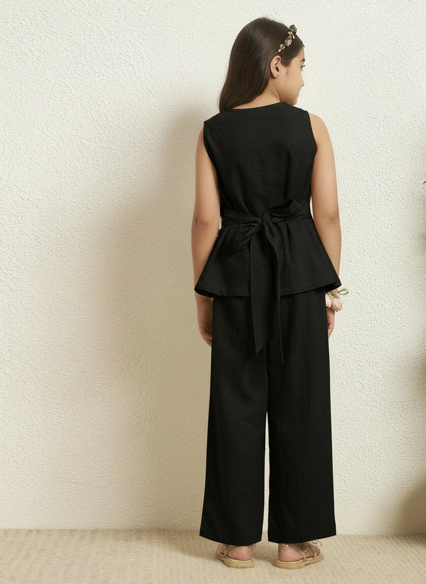 Inform when this item available Girls Black Cotton Blazer With Pant Co-Ord Set